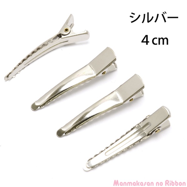 わに口ピン 韓国製ヘアクリップ シルバー 4cm 4個 [在庫限り]