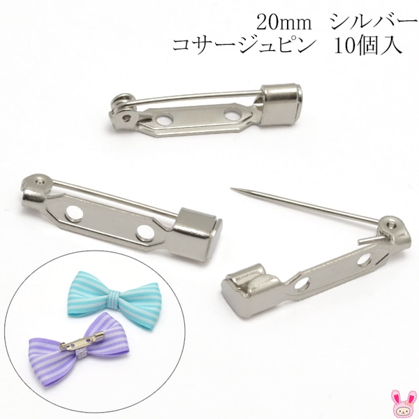 コサージュピン シルバー 韓国製 10個 (糸で縫いつけるタイプ:20mm)