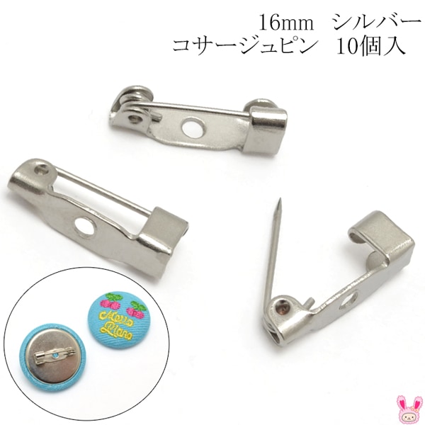 コサージュピン シルバー 韓国製 10個 (糸で縫いつけるタイプ:16mm)