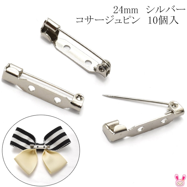 コサージュピン シルバー 韓国製 10個 (糸で縫いつけるタイプ:24mm)