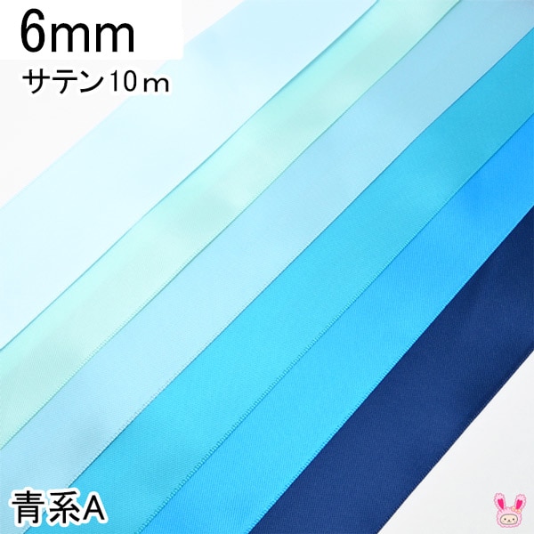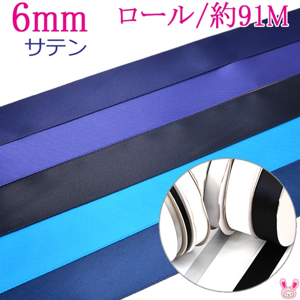 業務用 6mm 両面サテンリボン 青系 91m / 100Yards ロール巻き [メーカー取寄納期1か月] 【宅配便】