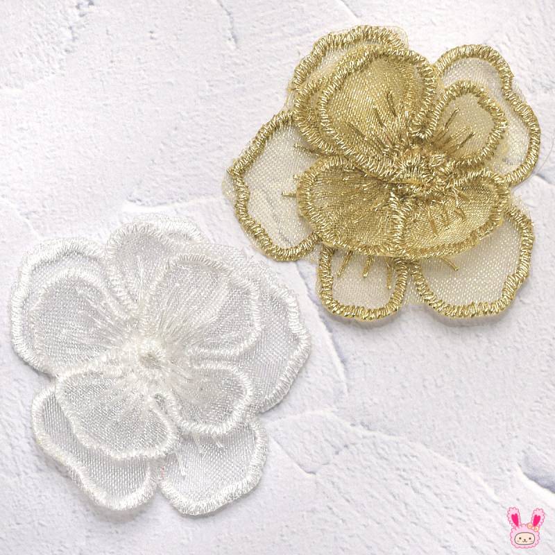 ミニフリンジ付きホワイトフラワーシアーリボン 幅50mm 1m単位 切り売り ○