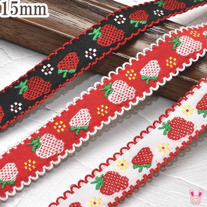 スカラップとストロベリーチロルリボン 幅15mm 1m単位 切り売り (3m以上)