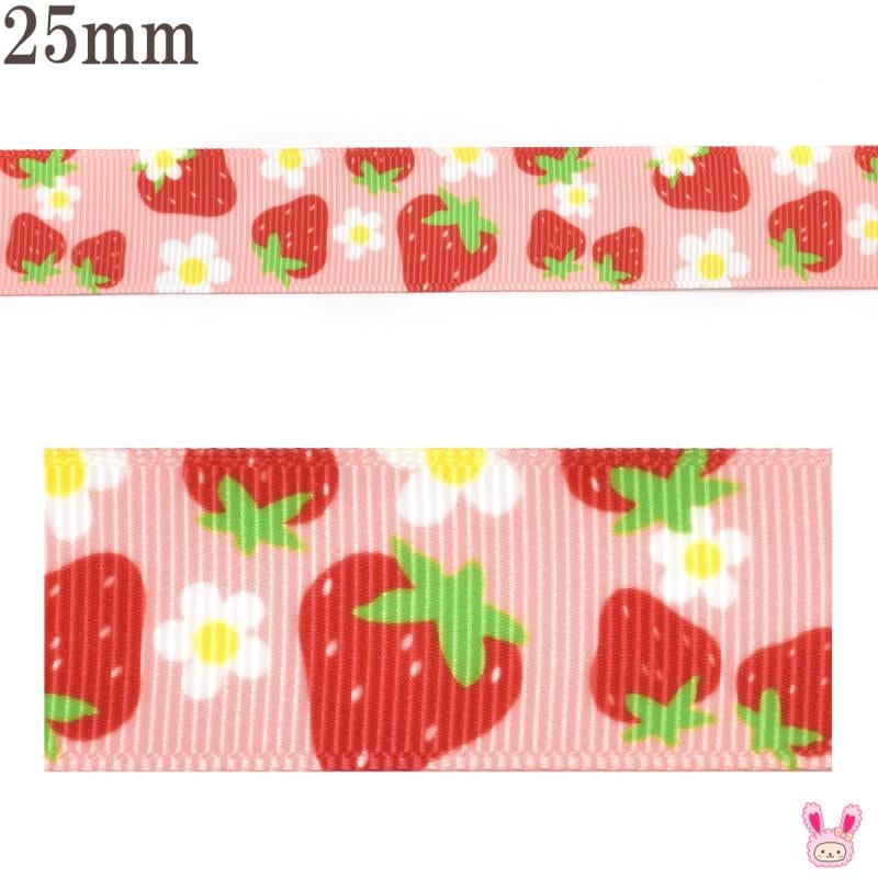 プリントリボン ミニミニお花とイチゴリボン 幅25mm 1m単位 切り売り (3m以上)