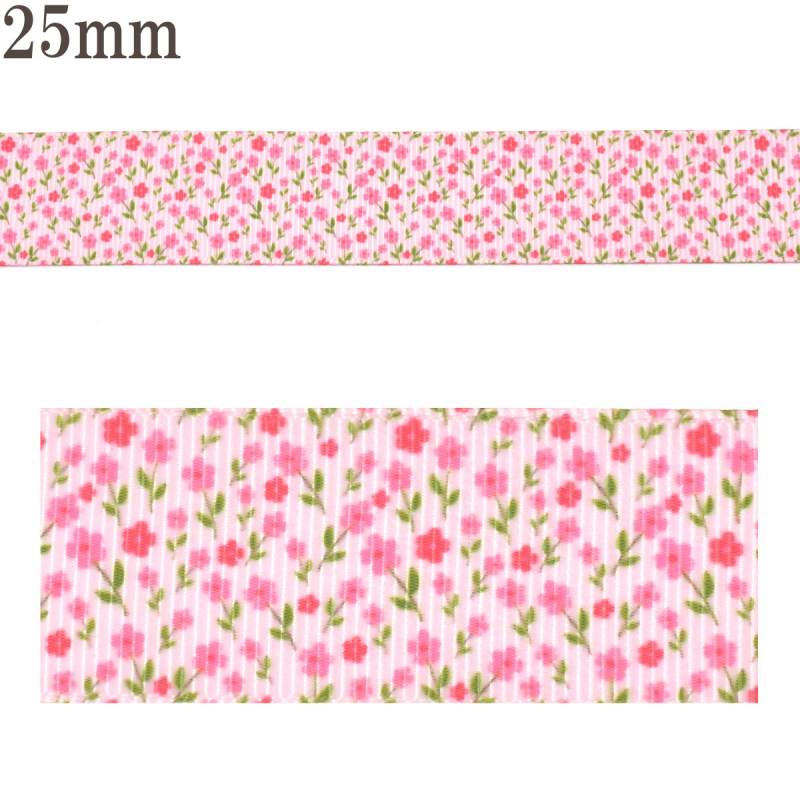 プリントリボン ミニフラワーワールドリボン 幅25mm 1m単位 切り売り (3m以上)