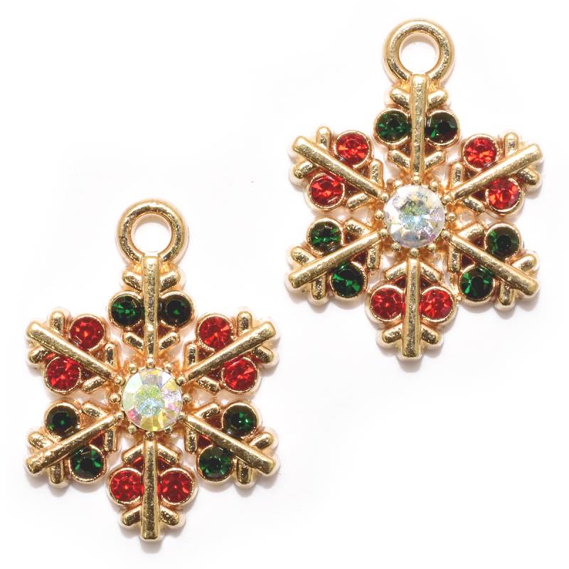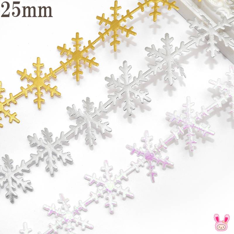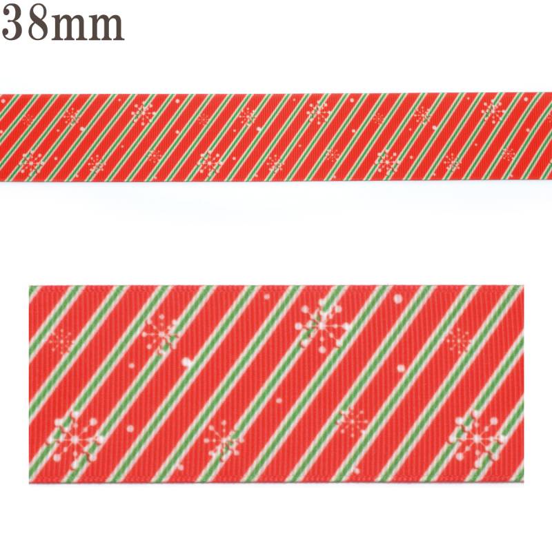 プリントリボン クリスマス 細ストライプと白い雪の結晶リボン 幅38mm 1m単位 切り売り (3m以上)
