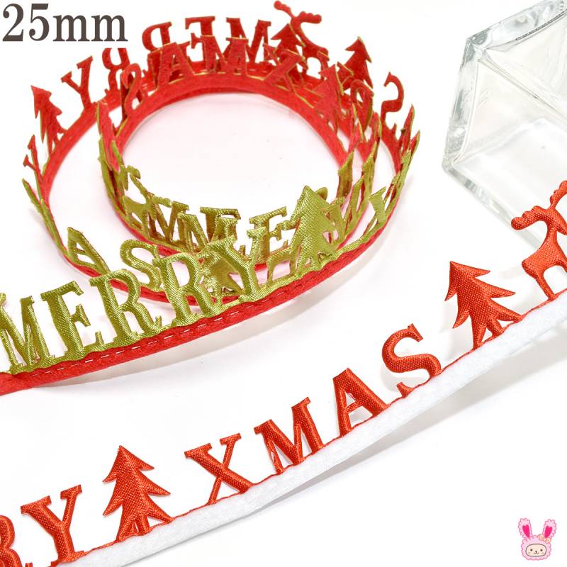 型抜きリボン メリークリスマスの文字リボン 幅25mm 3m