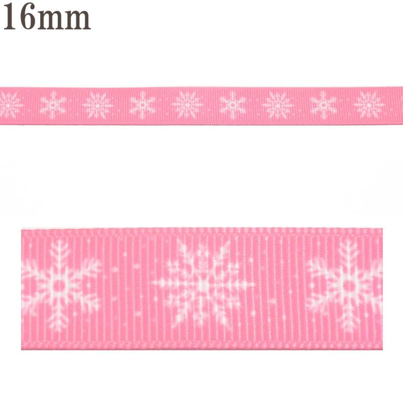 プリントリボン クリスマス ホットピンクと雪の結晶リボン 幅16mm 1m単位 切り売り (4m以上)