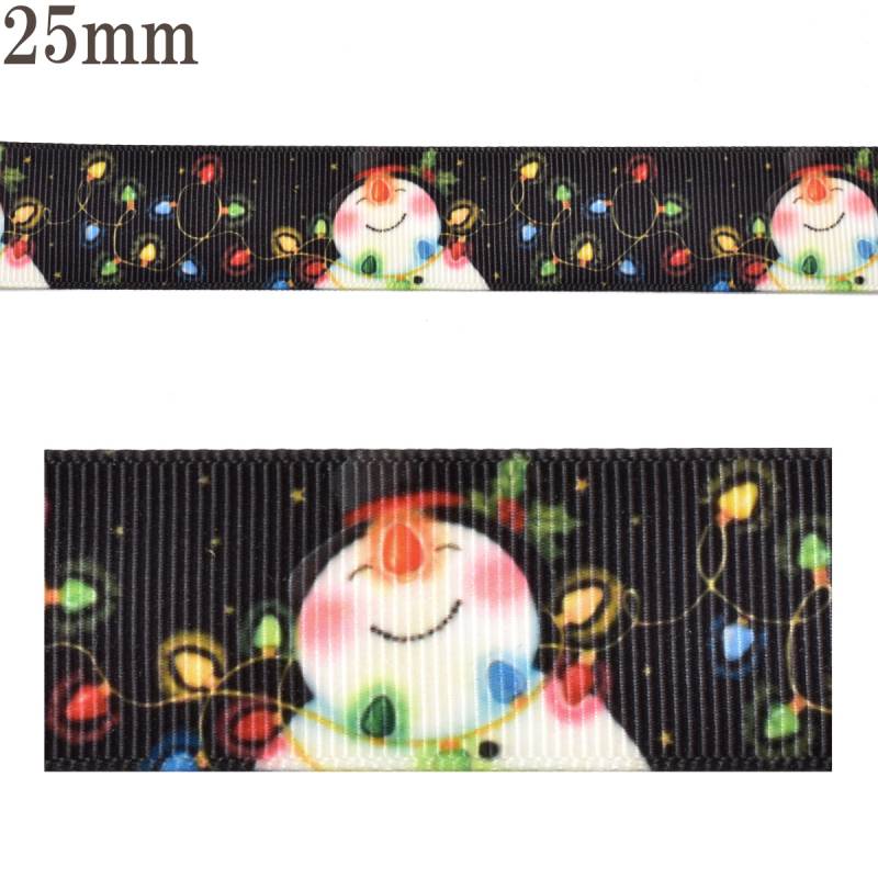 プリントリボン クリスマス 雪だるまとイルミネーションリボン 幅25mm 1m単位 切り売り (3m以上)