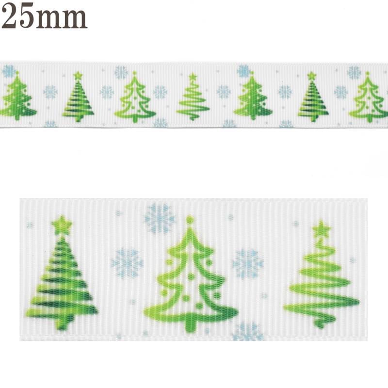 プリントリボン ポップラインなクリスマスツリーリボン 幅25mm 1m単位 切り売り (3m以上)