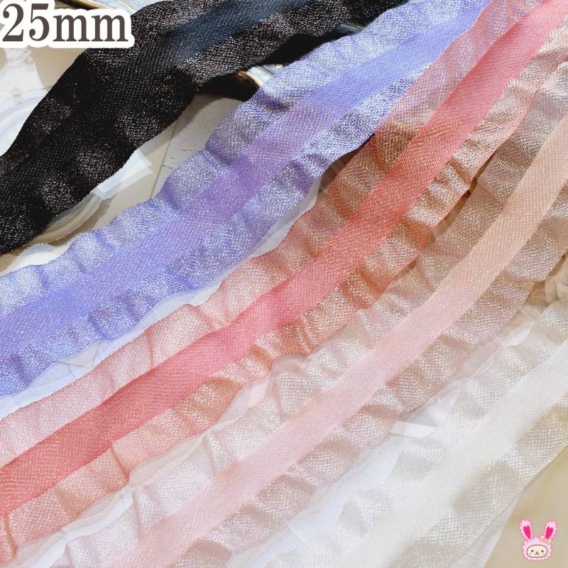 ファブリック風サイドフリルリボン 幅25mm 1m単位 切り売り (2m以上) [在庫限り]