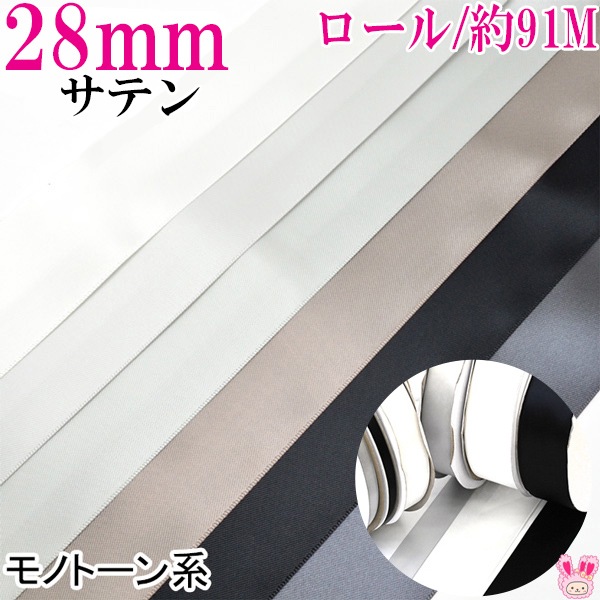 業務用 28mm 両面サテンリボン 黒・白・モノトーン系 91m / 100Yards ロール巻き [メーカー取寄納期1か月] 【宅配便】