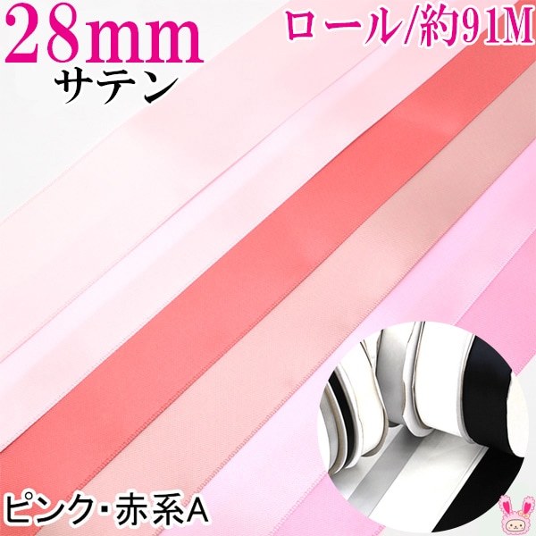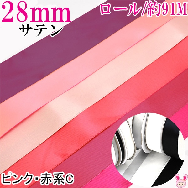 業務用 28mm 両面サテンリボン ピンク系 91m / 100Yards ロール巻き [メーカー取寄納期1か月] 【宅配便】