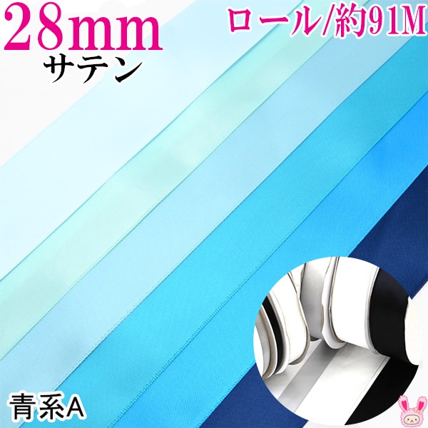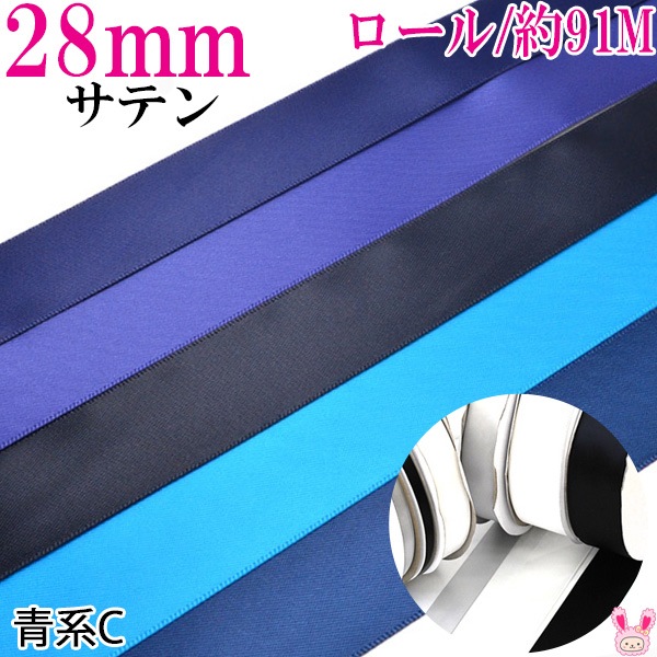 業務用 28mm 両面サテンリボン 青系 91m / 100Yards ロール巻き [メーカー取寄納期1か月] 【宅配便】