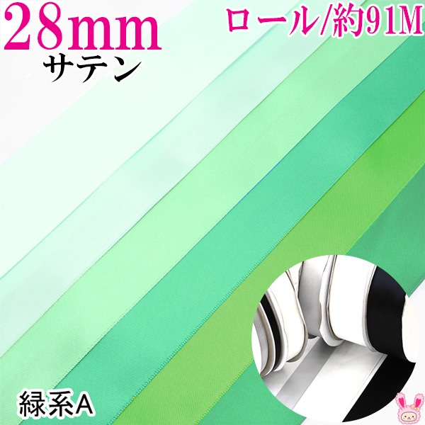 業務用 28mm 両面サテンリボン 緑系 91m / 100Yards ロール巻き [メーカー取寄納期1か月] 【宅配便】