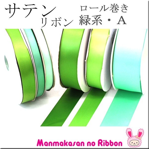 業務用 89mm 両面サテンリボン 緑系 91m / 100Yards ロール巻き [メーカー取寄納期1か月] 【宅配便】