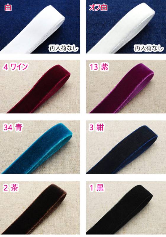 15mm B品 片面ベルベット素材リボン ベロア 韓国製 2m [在庫限り]