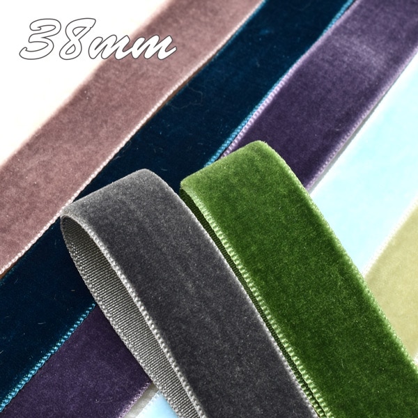 38mm B品 片面ベルベット素材リボン ベロア 追加色 韓国製 2m [在庫限り]