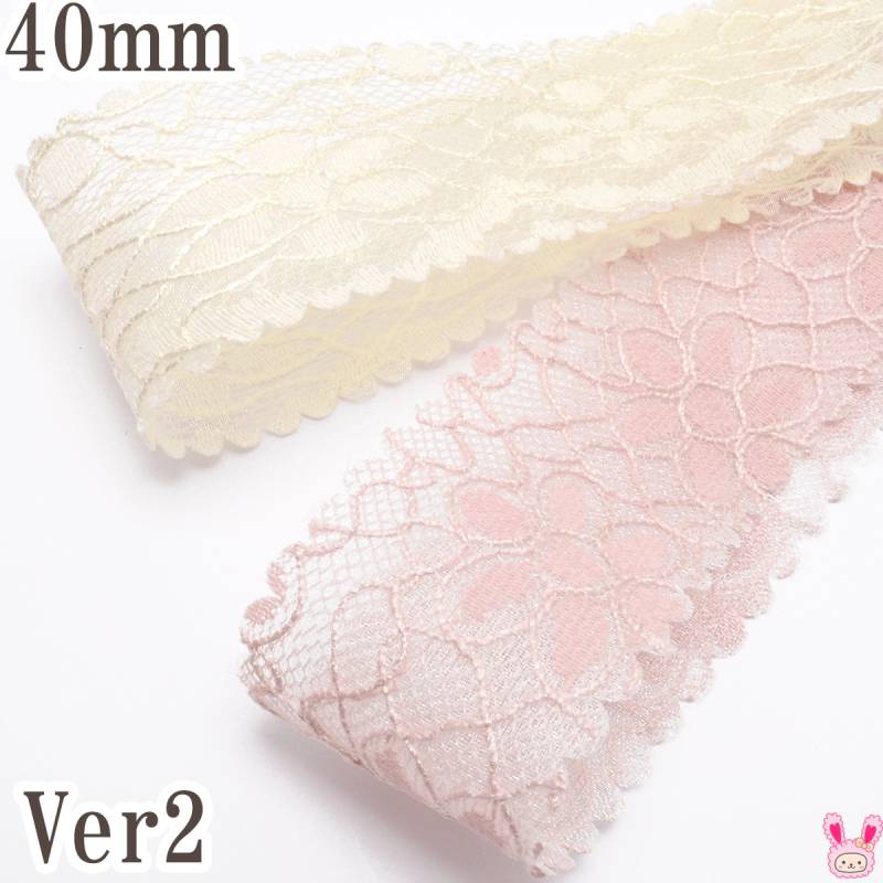 スカラップとメッシュとかわいいお花の刺繍リボン 幅40mm 1m単位 切り売り (2m以上)