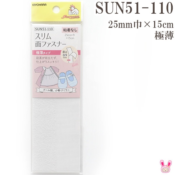 スリム面ファスナー 極薄タイプ 粘着なし 25mm巾×15cm SUN51-110 サンコッコー
