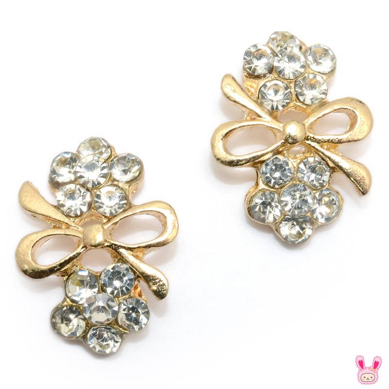 アクセサリーパーツ ストーンのお花とちょうちょ結びパーツ 2個