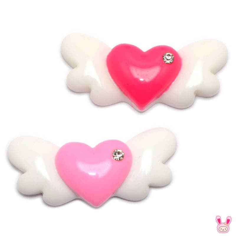 デコパーツ ストーン付きラブリー天使のハートパーツ 2個 ★