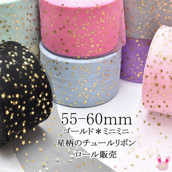 55-60mm まとめてお買い得 ゴールド ミニミニ星柄のチュールリボン 約22m巻き 【宅配便】
