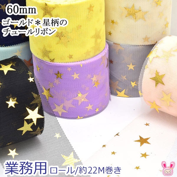 55-60mm まとめてお買い得 ゴールド 星柄のチュールリボン 約22m巻き 【宅配便】 [在庫限り][NEW SALE価格]