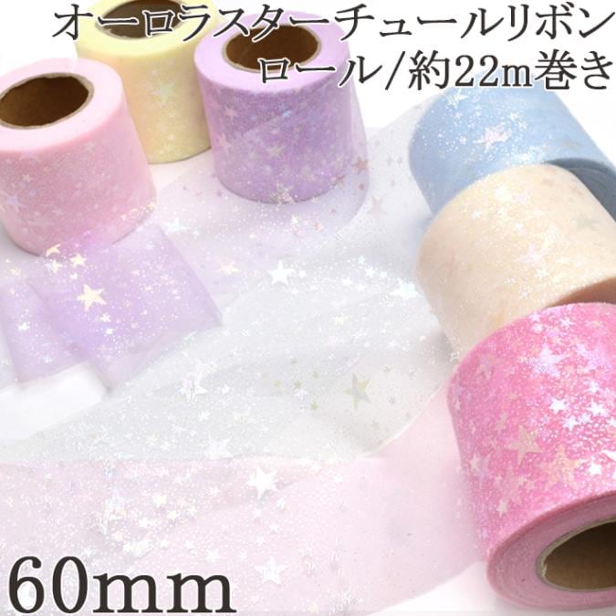 《まとめてお買い得》60mm オーロラスターチュールリボン 約22m巻き 【宅配便】