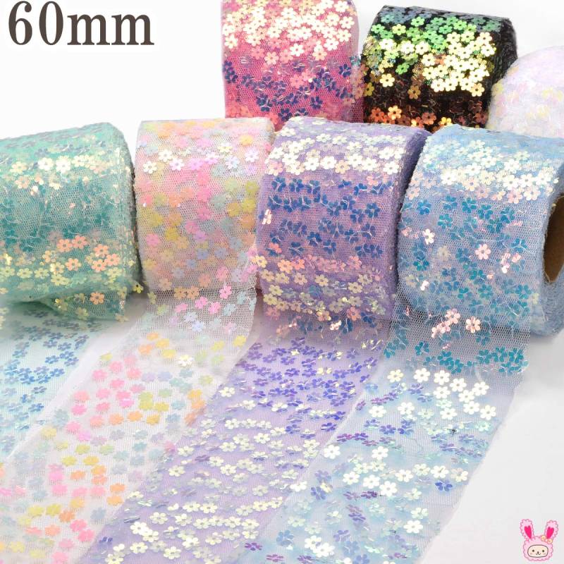 業務用 小花スパンコールとメッシュチュールリボン 幅60mm ロール巻き 約9m 【宅配便】[在庫限り]