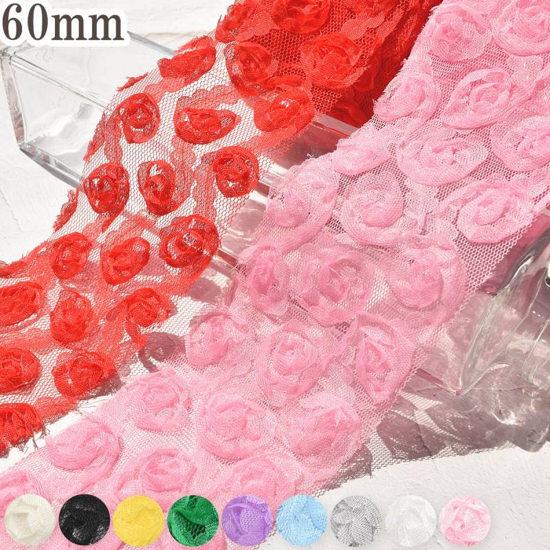 ひらひらローズチュールリボン 幅60mm 1m単位 切り売り (2m以上) [在庫限り]