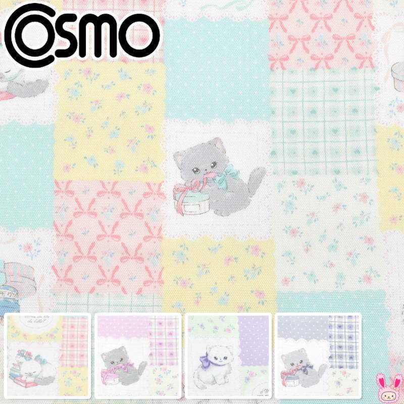 猫のパッチワーク風 オックス生地 AP52204-2 コスモ (50cm以上10cm単位切り売り)☆