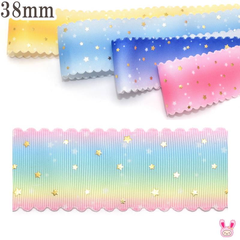 プリントリボン ゆめかわスカラップと箔押しスターリボン 幅38mm 1m単位 切り売り (2m以上)