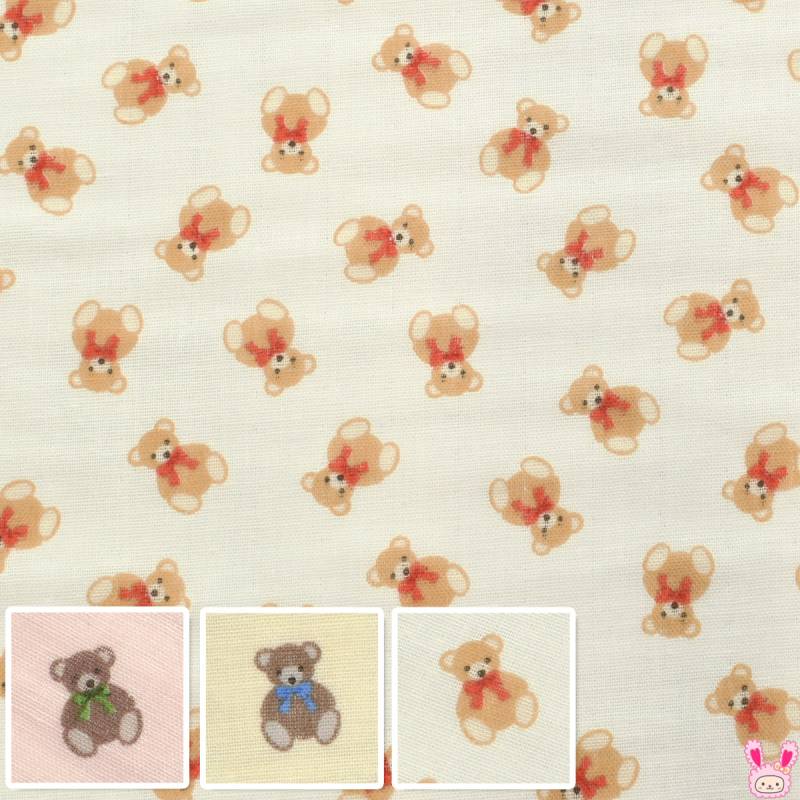 シンプルなキュートベア Wガーゼ生地 38139-1 カナヤス (50cm以上10cm単位切り売り)