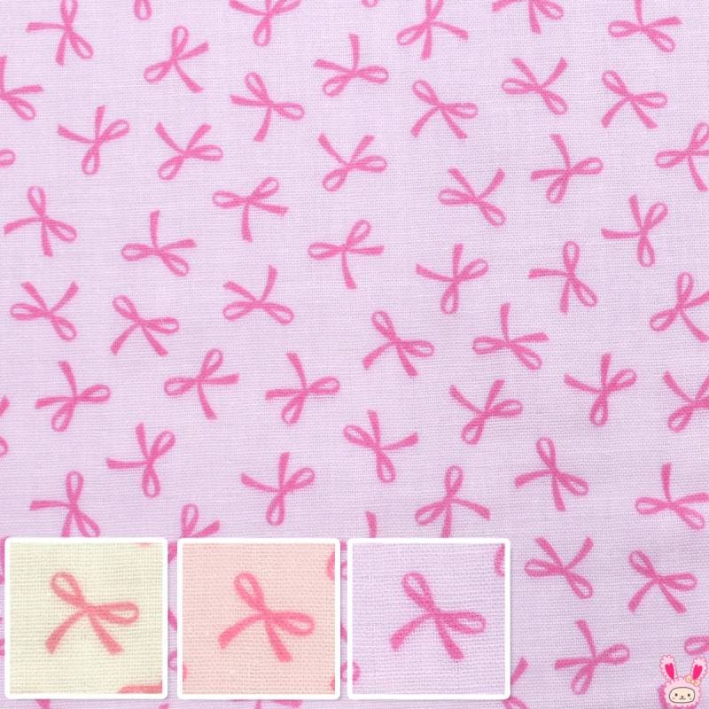 シンプルなガーリーリボン Wガーゼ生地 38139-3 カナヤス (50cm以上10cm単位切り売り)