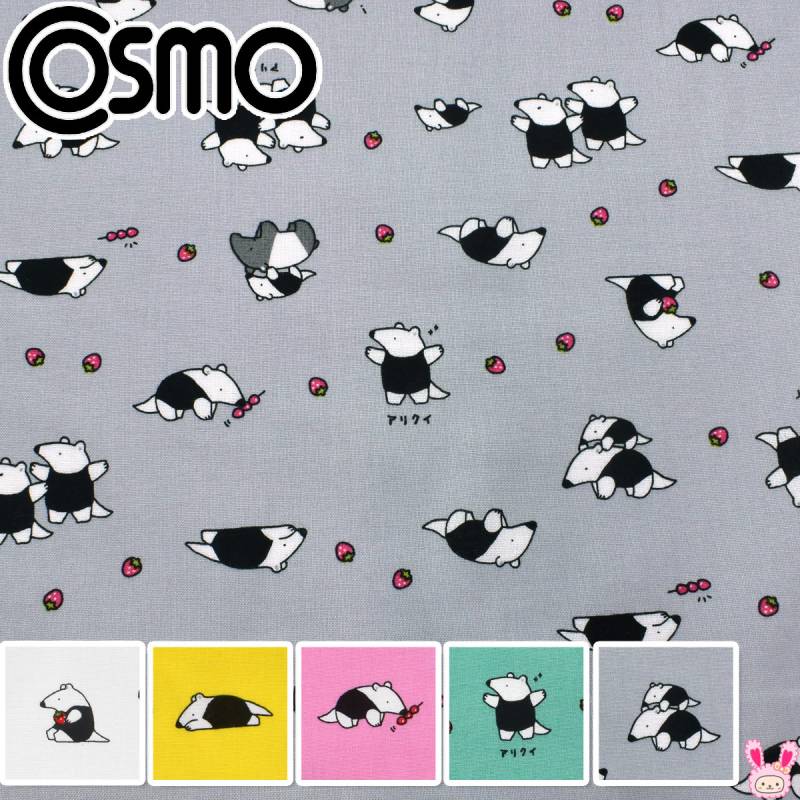 アリクイといちご シーチング生地 AP45104-3 コスモ (50cm以上10cm単位切り売り) [在庫限り]