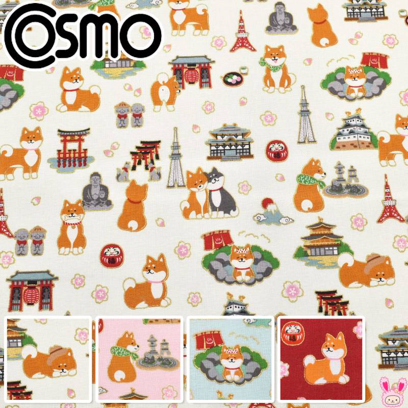 柴犬の日本めぐり シーチング生地 AP55802-1 コスモ (50cm以上10cm単位切り売り)
