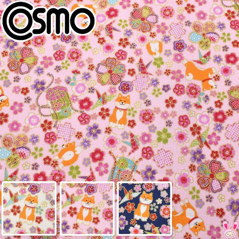 花咲く柴犬日和 シーチング生地 AP55802-2 コスモ (50cm以上10cm単位切り売り)