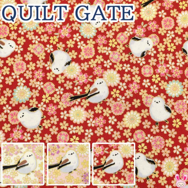 花舞うシマエナガ シーチング生地 HR3550-11 キルトゲイト (50cm以上10cm単位切り売り)