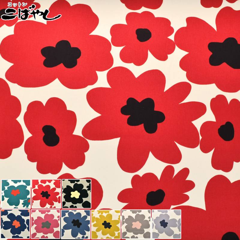 北欧風ポップフラワー ツイル生地 KTS3676 コットンこばやし (50cm以上10cm単位切り売り)