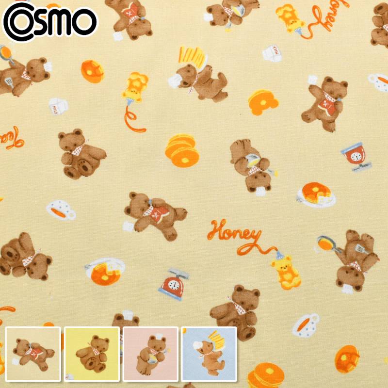 くまとパンケーキ シーチング生地 AP61208-2 コスモ (50cm以上10cm単位切り売り)