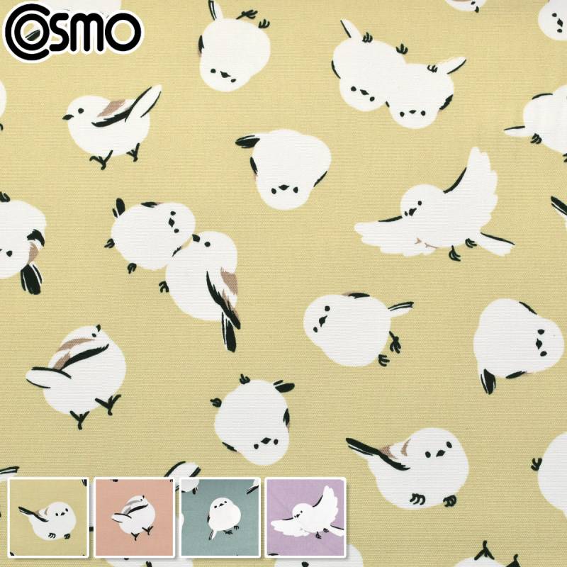 ふんわりシマエナガ オックス生地 AP61104-2 コスモ (50cm以上10cm単位切り売り)