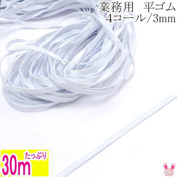業務用 平ゴム ホワイト 4コール 幅3mm 約30m 【タケダ】