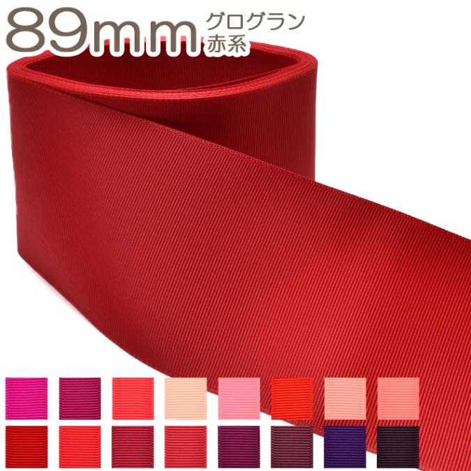 89mm グログランリボン 1m単位 切り売り 赤系 (2m以上)