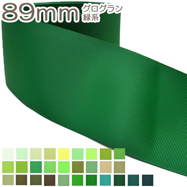 89mm グログランリボン 1m単位 切り売り 緑系 (2m以上)