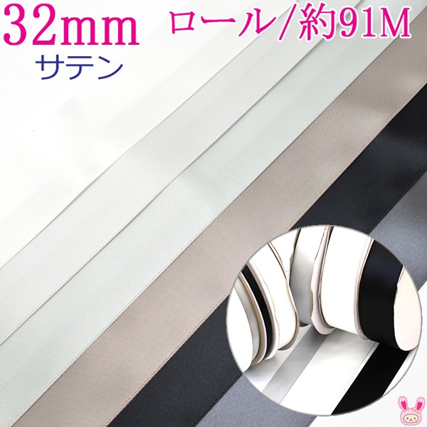業務用 32mm 両面サテンリボン 黒・白・モノトーン系 91m / 100Yards ロール巻き [メーカー取寄納期1か月] 【宅配便】