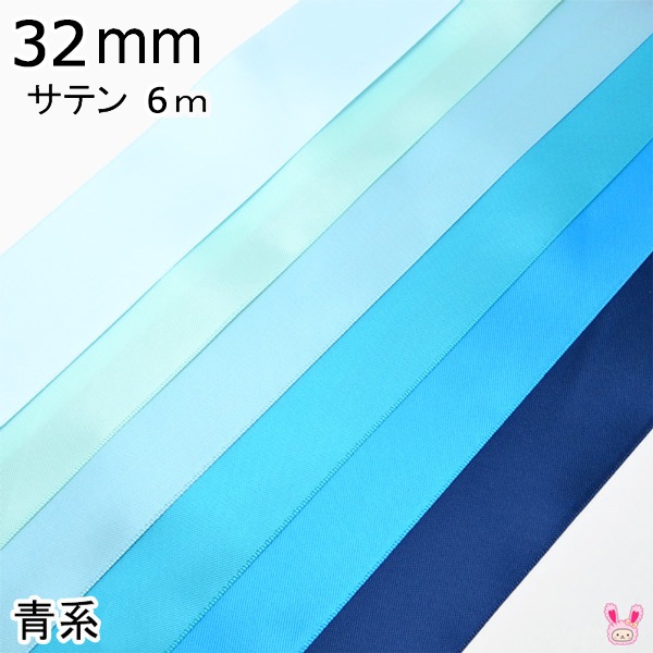業務用 32mm 両面サテンリボン 青系 91m / 100Yards ロール巻き [メーカー取寄納期1か月] 【宅配便】