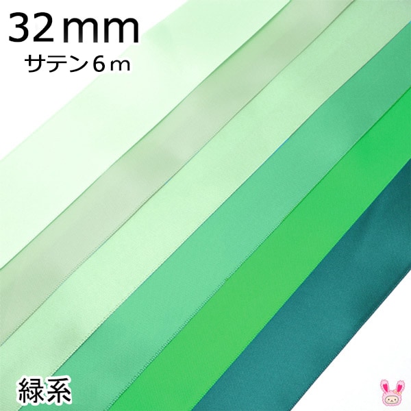 業務用 32mm 両面サテンリボン 緑系 91m / 100Yards ロール巻き [メーカー取寄納期1か月] 【宅配便】