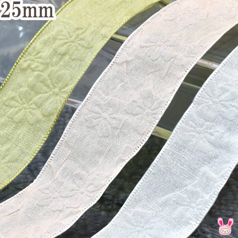 エンボスフラワーシフォンリボン 幅25mm 1m単位 切り売り ○