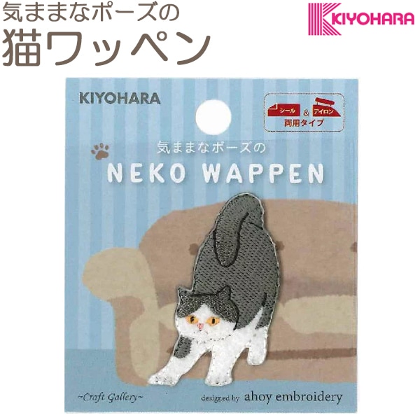 気ままなポーズの猫ワッペン WNK-05 ハチワレ シール&アイロン接着 清原 [在庫限り]